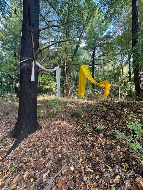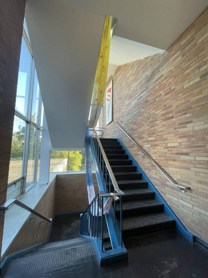 For the first installation of the semester, we were instructed to have our artwork be site-related. My piece, which is titled Natural Fashion, was located in the Kresge art center stair way. I decided to put it in this area for the soul purpose of the natural lighting that comes through the windows and shines into the building. My concept for this project was originally inspired by the microbiological world of science that is used in the fashion industry. After several conversations and helpful critiques with others, I developed a different concept that still involved fashion and biology. Rather than just displaying microscopic biological organisms, I decided to use naturally derived dyes to color the muslin fabric that I used for the project. I used muslin because it is 100% natural cotton, and a sustainable fabric. I decided to also paint the shapes of leaves onto the fabric to add an additional natural contrast.